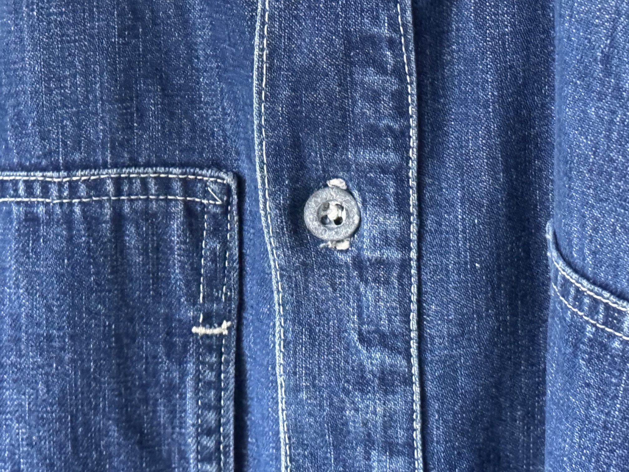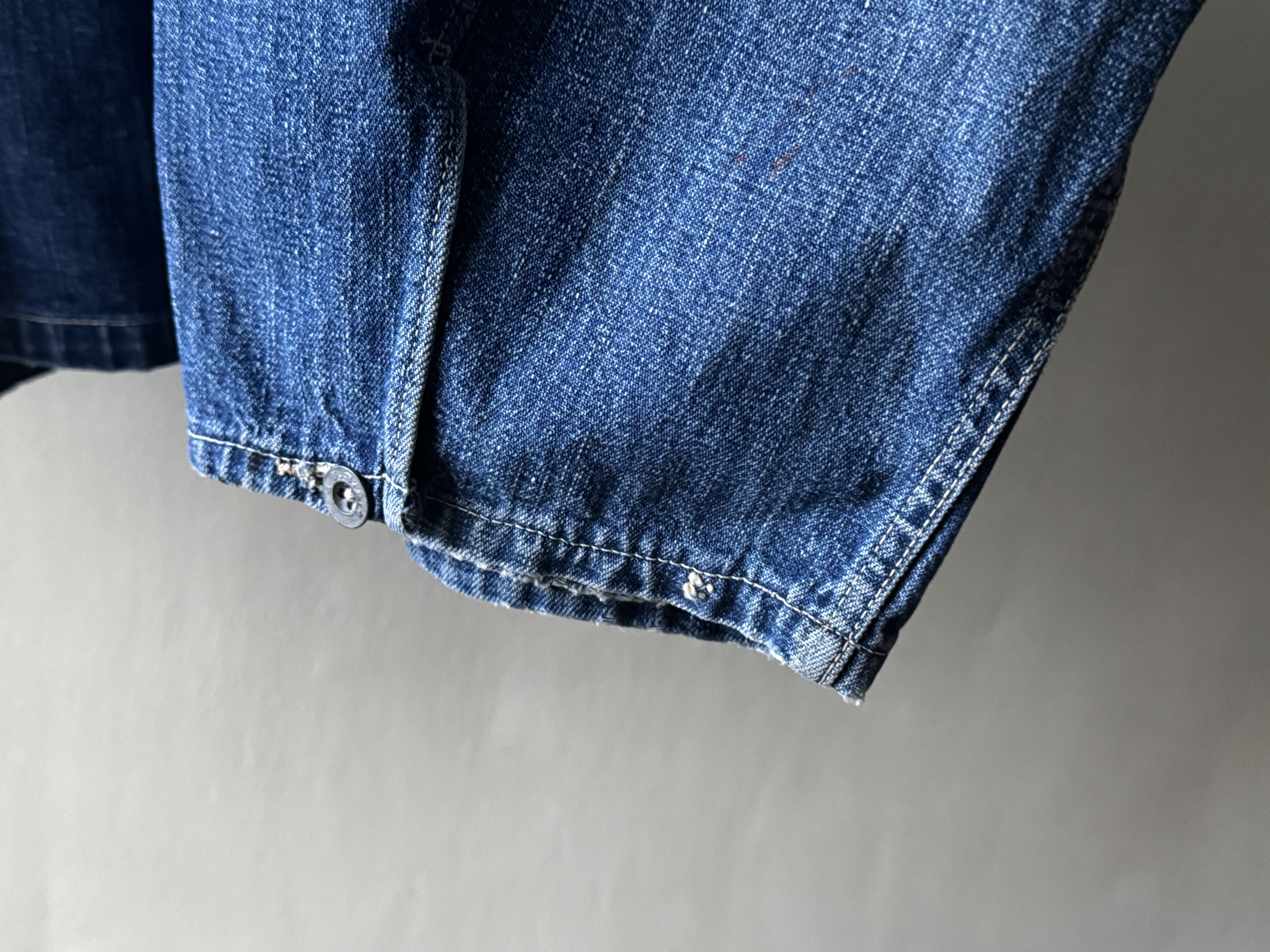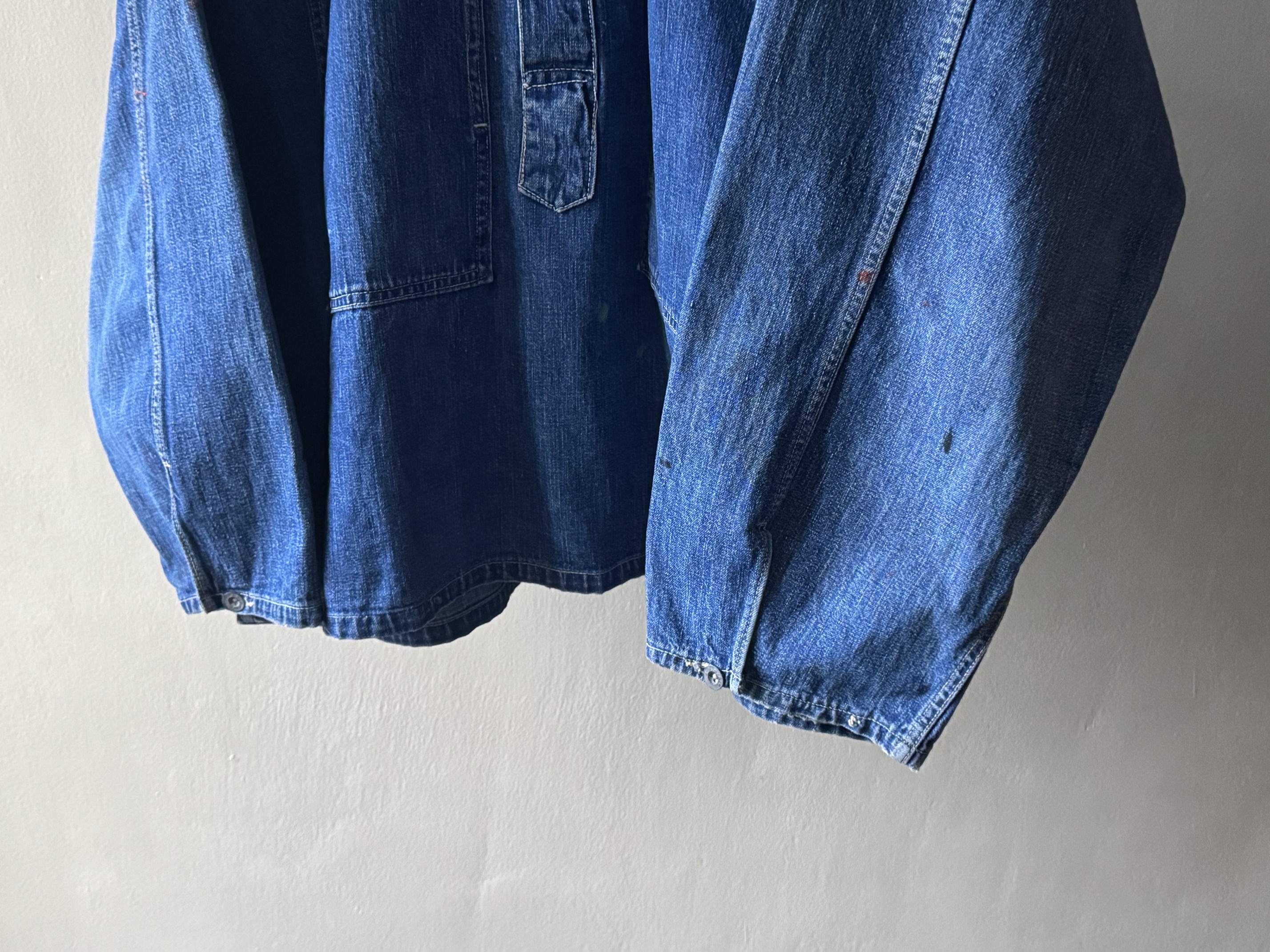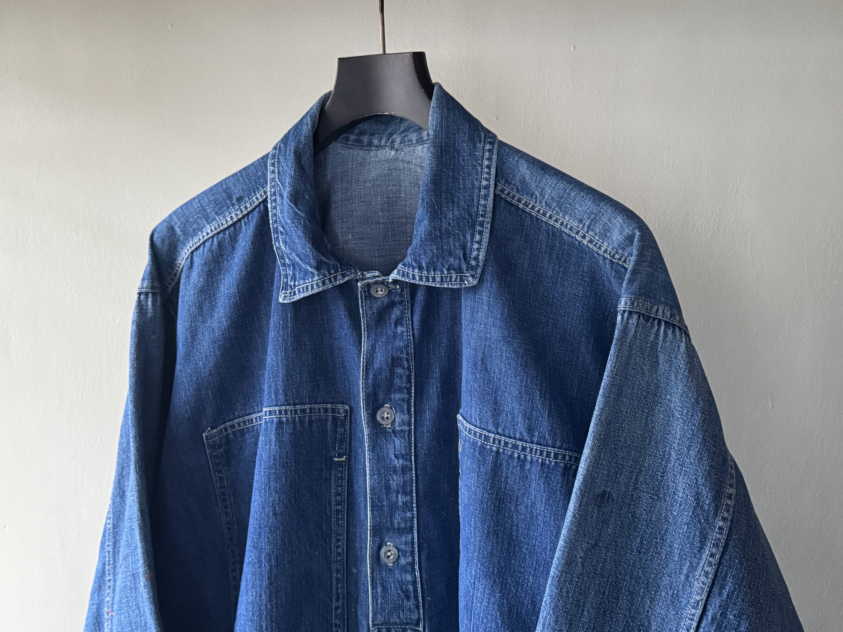 1920~30’s US Army Denim Pullover ” Yellou Stich , Small Metal Button , 2Tone ”