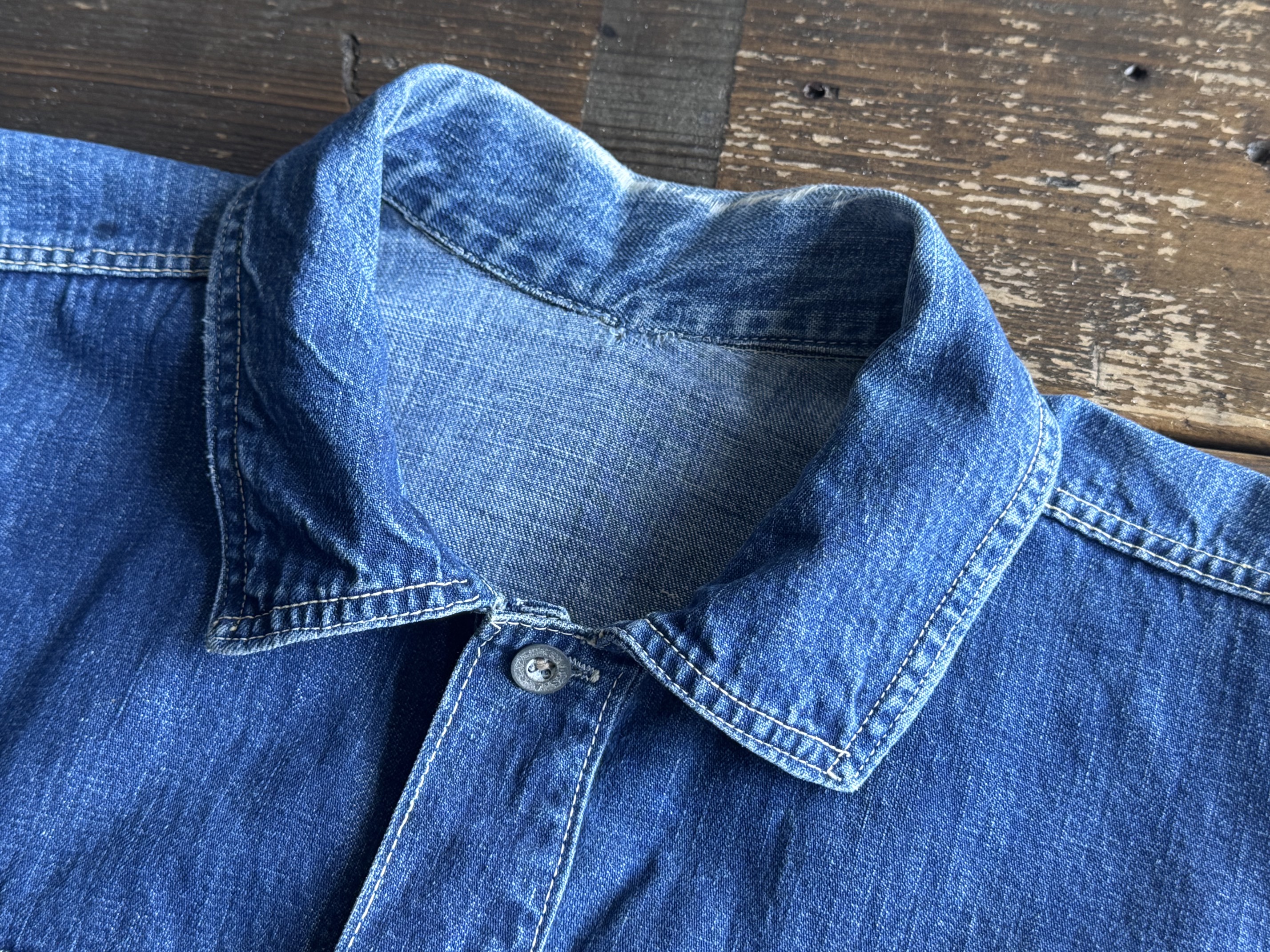 襟元に小傷がありますがデニム生地にはハリがあります。