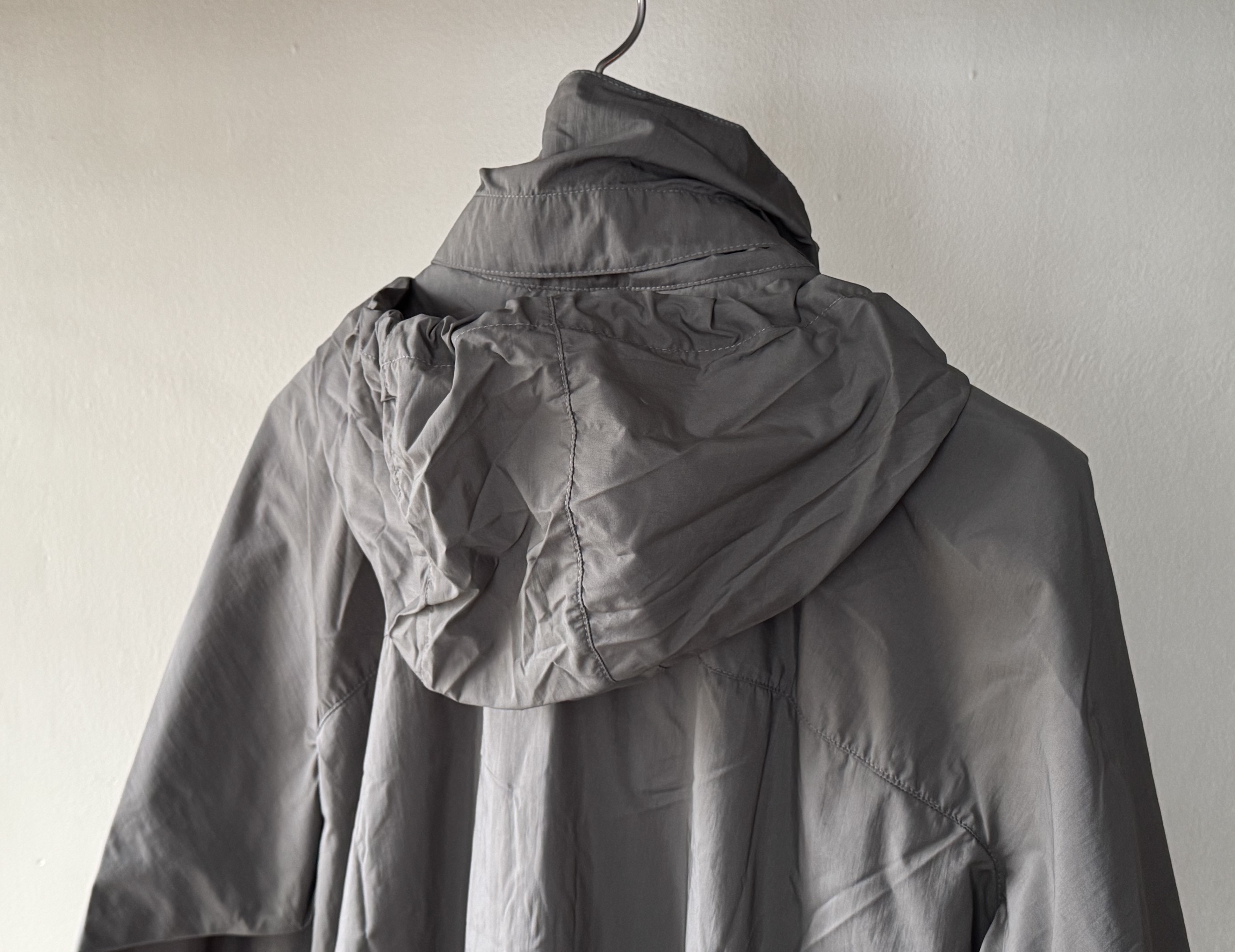襟には同素材のフードが収納されていますので2スタイルで楽しめます。