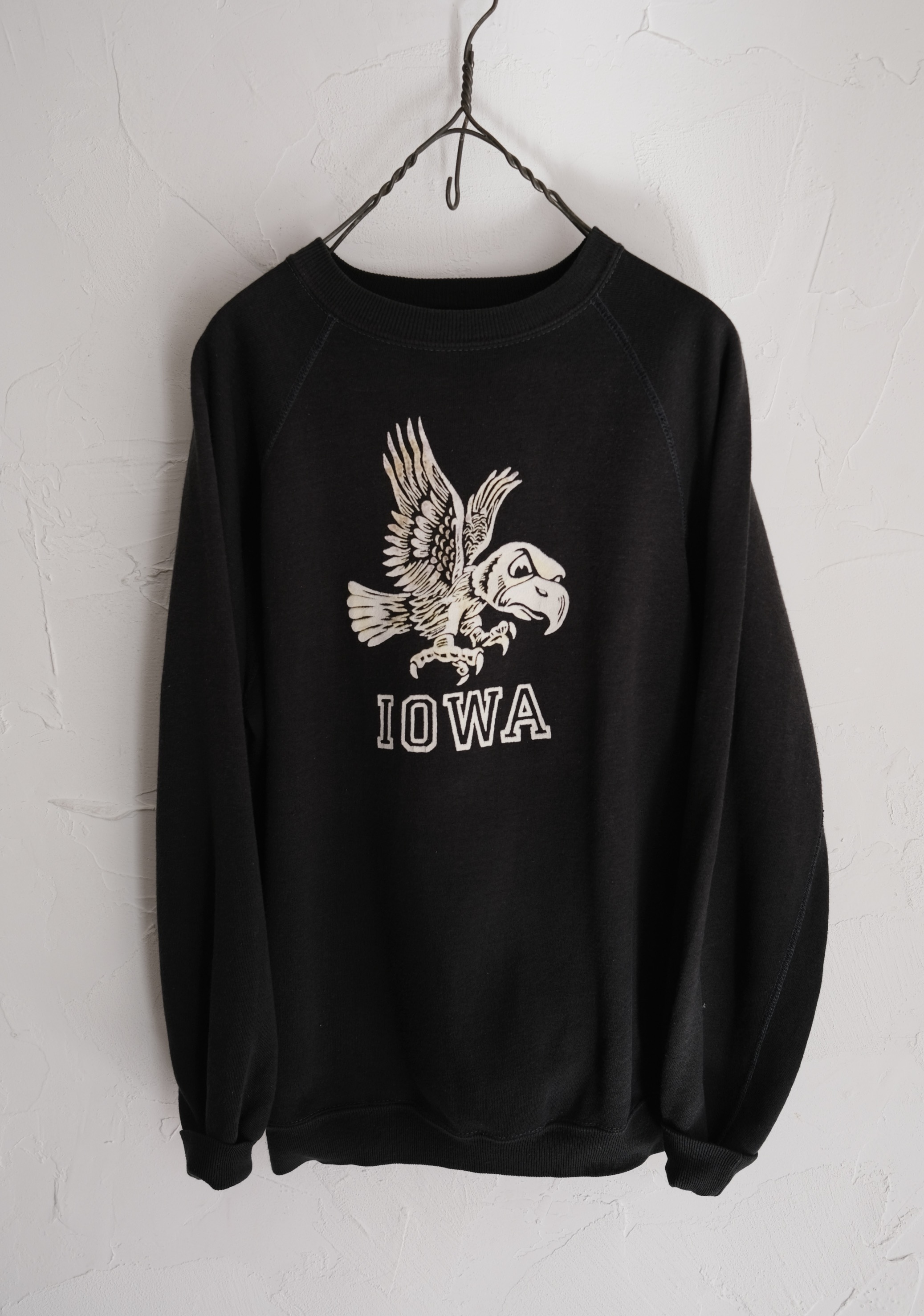 60~70’s Black Body Sweat Shirt ” IOWA , フロッキープリント ”