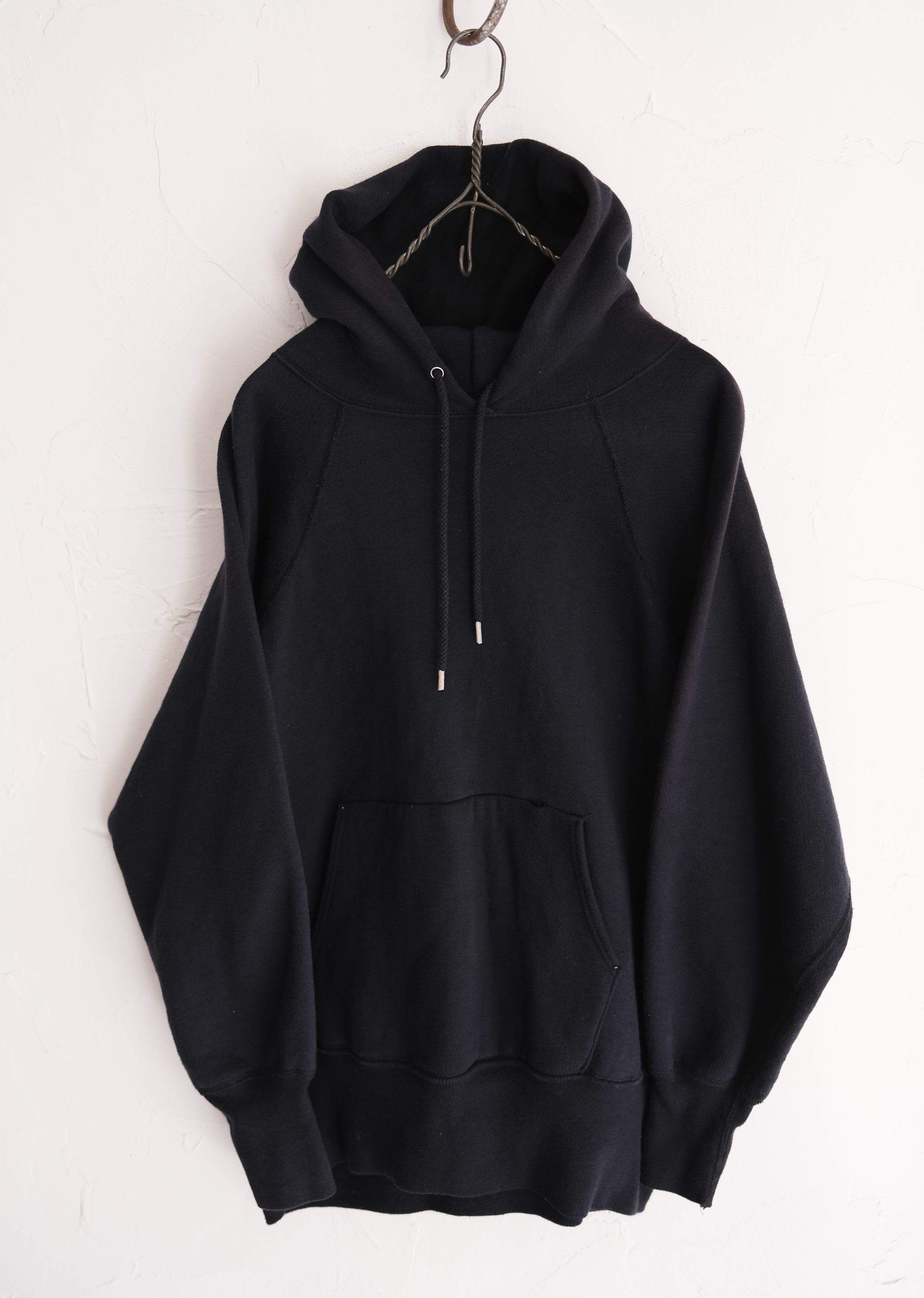 ラグランのプレーンなスウェットパーカー。