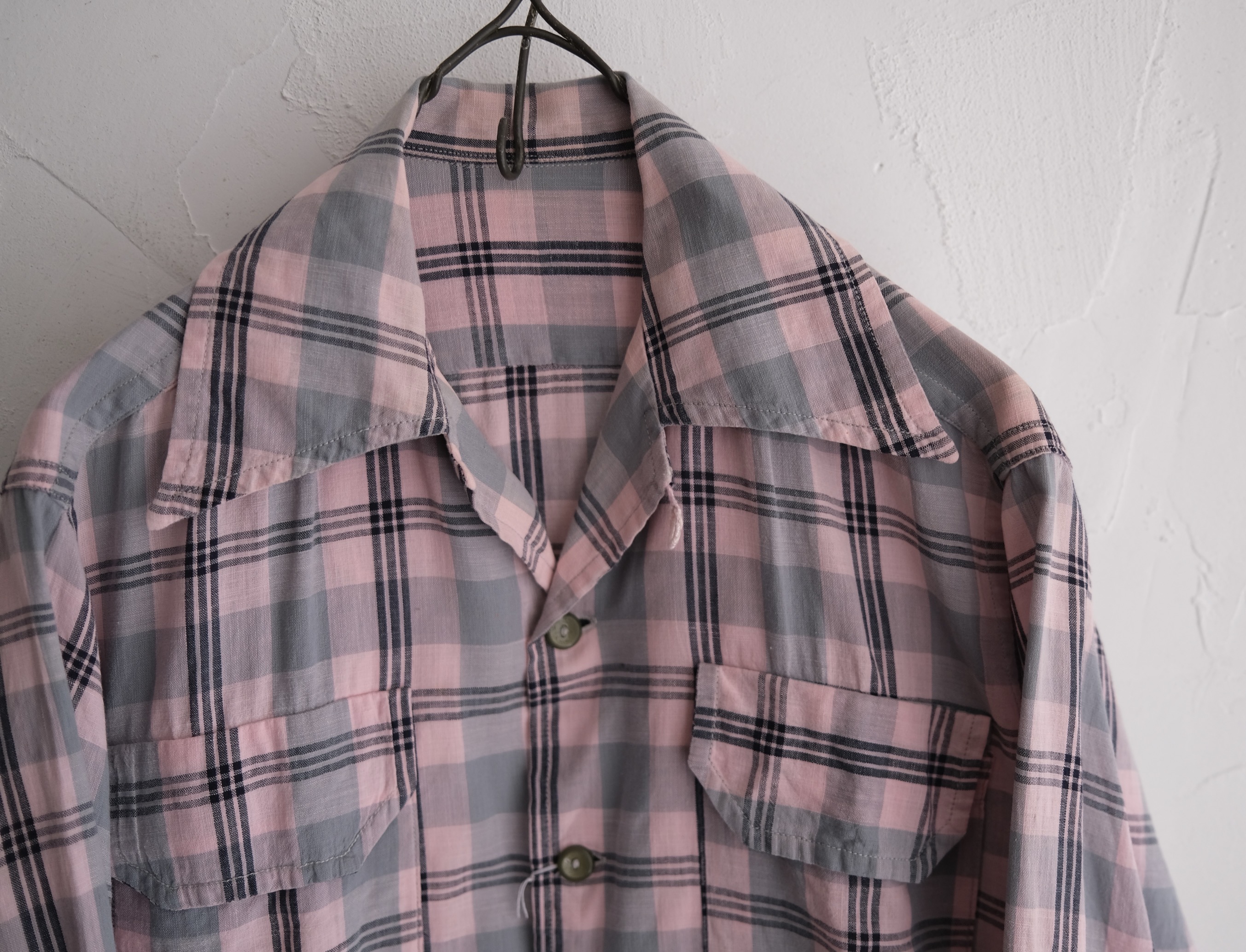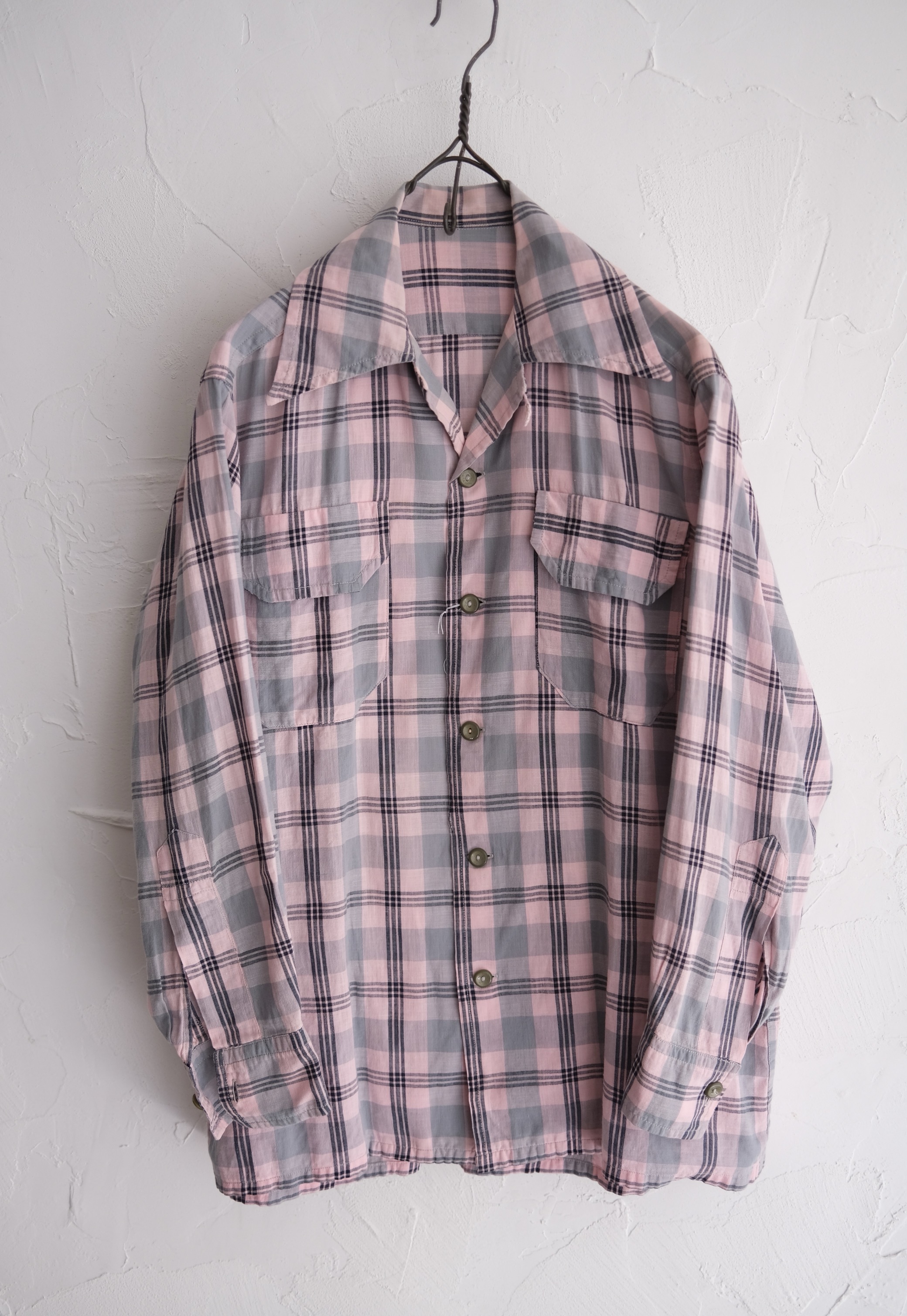 40~50’s Cotton Shirt Pink×Gray