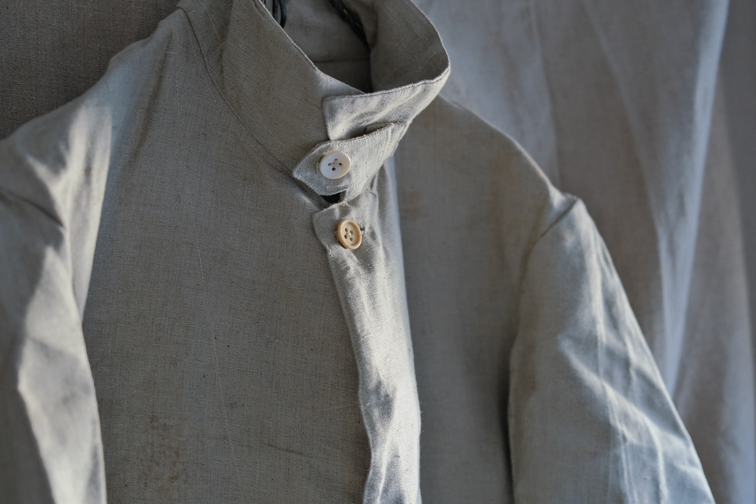 チンスト付き Aライン ナチュラルリネン ここまで大きい贅沢なボーンボタンも珍しい・・・・。