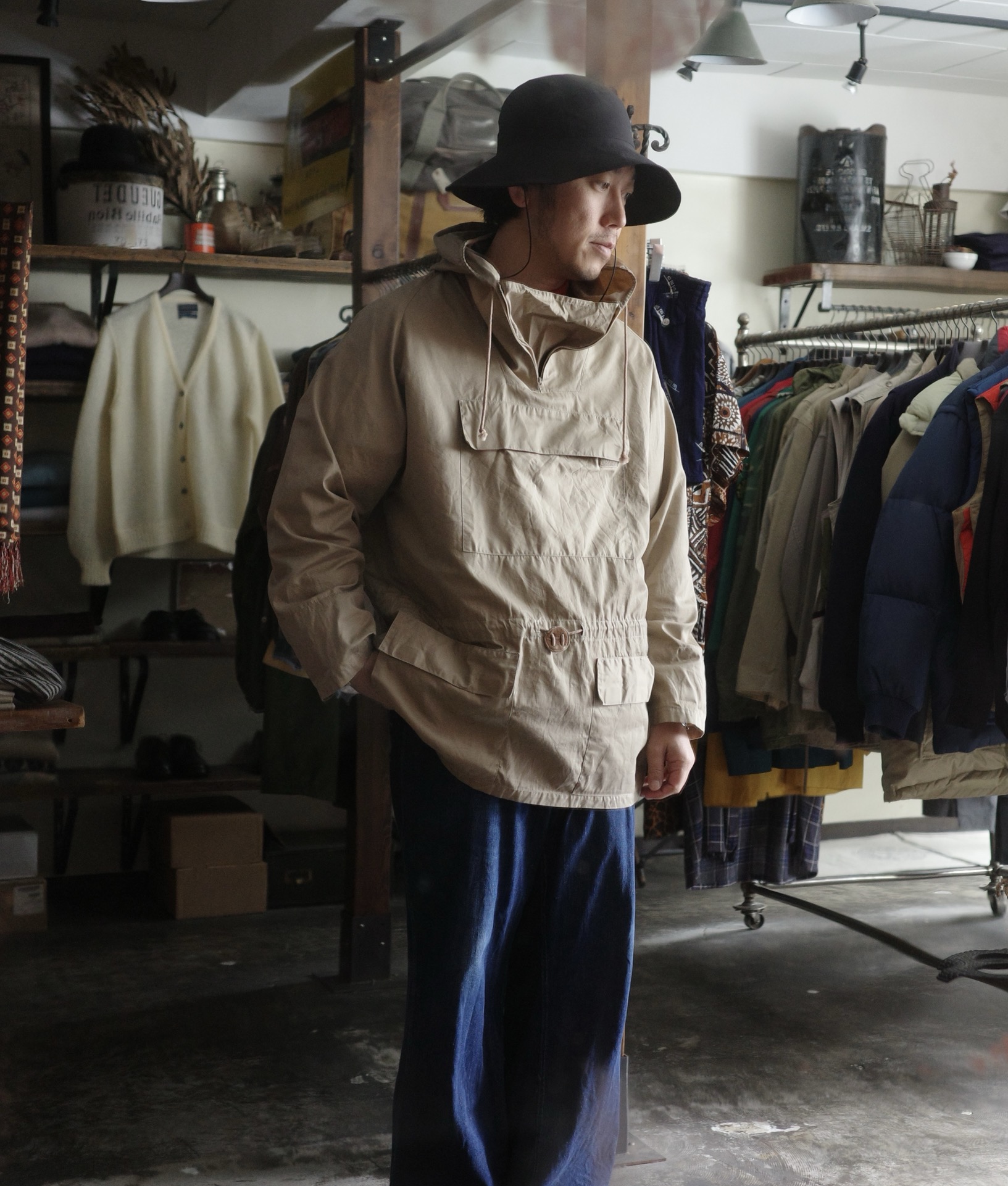 裏地もないのでサラッと被れる今時期にはぴったりのアイテム。