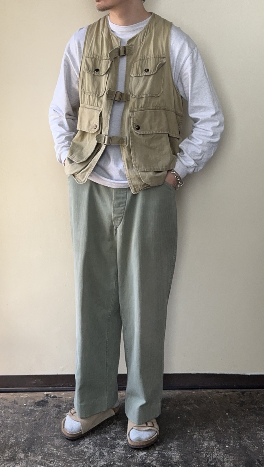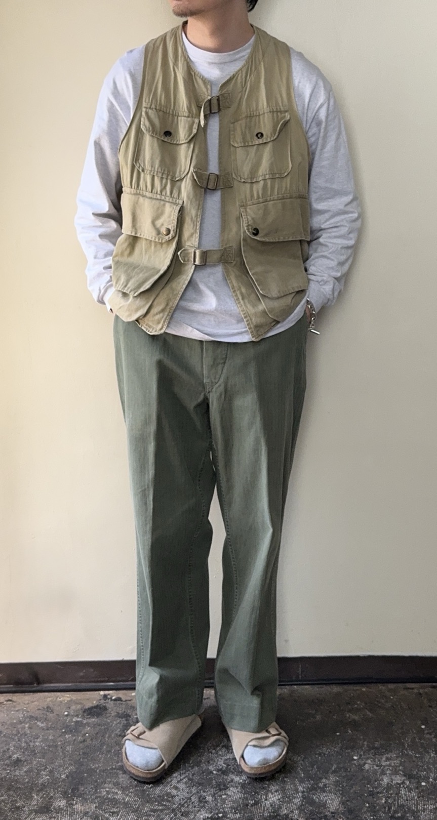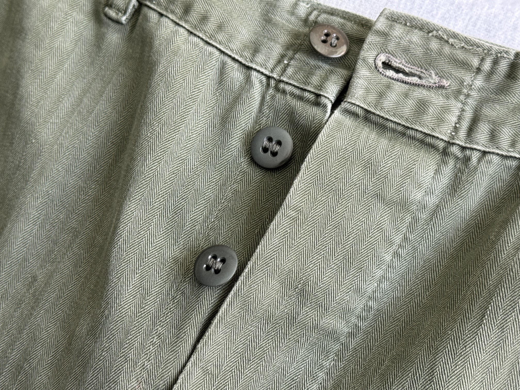 シルエットやディテールはP-58と同じですが、生地がHBT生地になっています